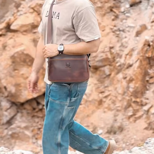 Premium Full Grain Leather Messenger Bag - 9.5" Soft Shoulder Bag