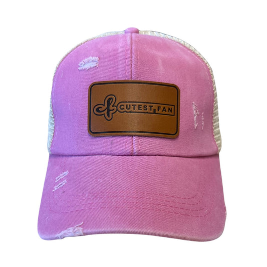 Cutest Fan® Ponytail Trucker Hat with Leather Patch - 2 Colors