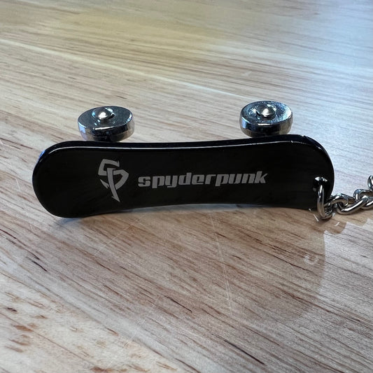 Spyderpunk Skateboard Keychain - Stainless Steel with Rolling Wheels
