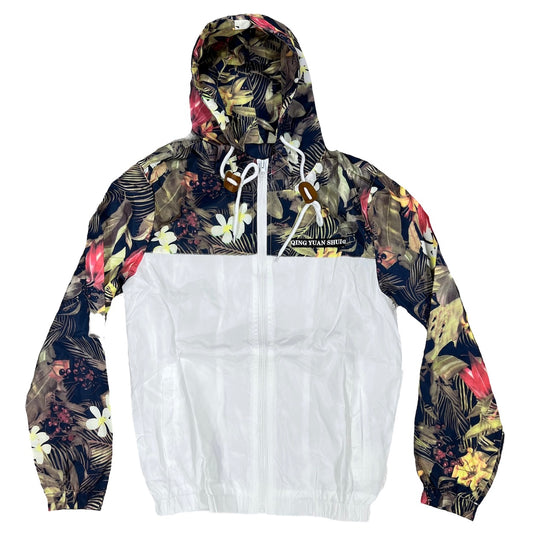 Women's Floral Print Hooded Windbreaker Jacket with Zip Pockets - 3 Colors Available