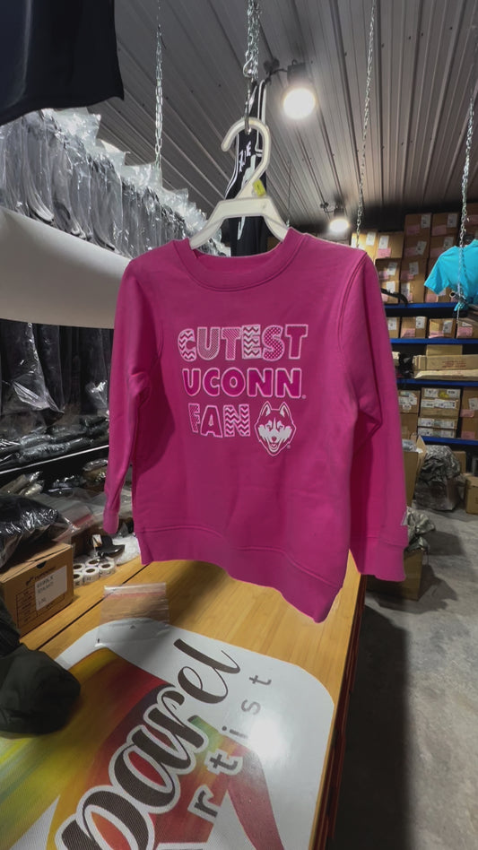 UConn Huskies Toddler Pink Fleece Sweatshirt 'Cutest Fan' by Russell Sports - Sizes 2T-5T