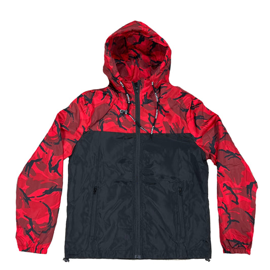 Youth Camouflage Hooded Windbreaker Jacket with Zip Pockets - 3 Colors Available