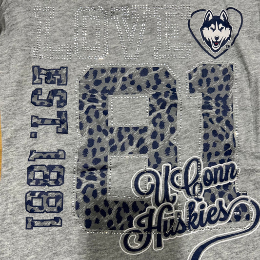 UConn Huskies Youth Girls Gray Retro '81 Bling T-Shirt by Rivalry Threads - Sizes XS-XL