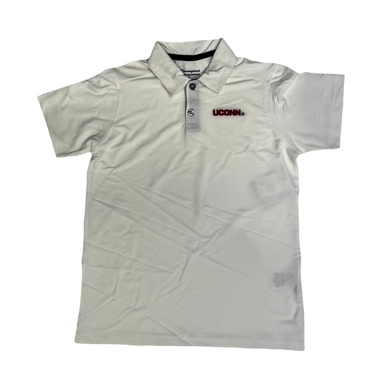UConn Huskies Youth White Embroidered Polo Shirt by Champion - Sizes SM-XL