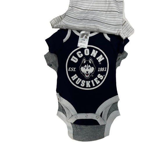 UConn Huskies Infant Cotton Sleeper 3-Pack by Russell Sports - 0-3 Months