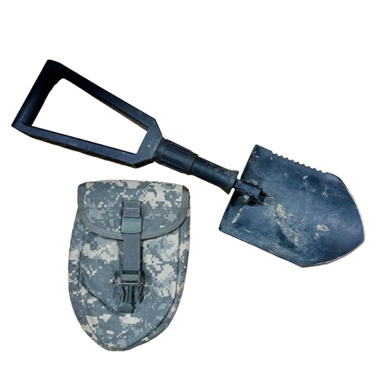 US Military E-Tool Shovel Tri Fold D Handle W/Vinyl Alice Carrier Cover