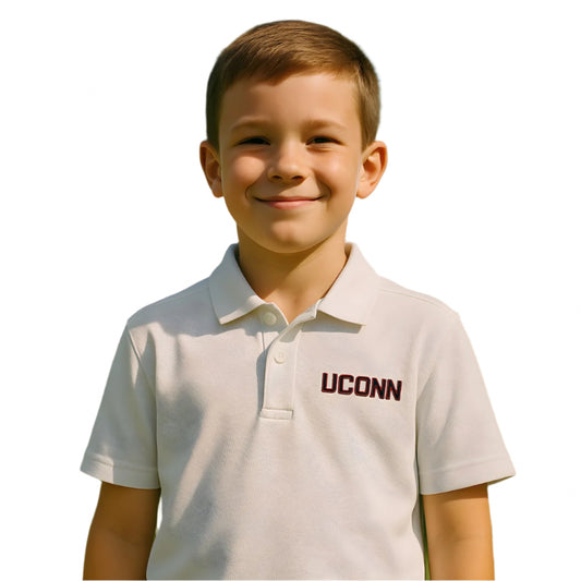 UConn Huskies Youth White Embroidered Polo Shirt by Champion - Sizes SM-XL