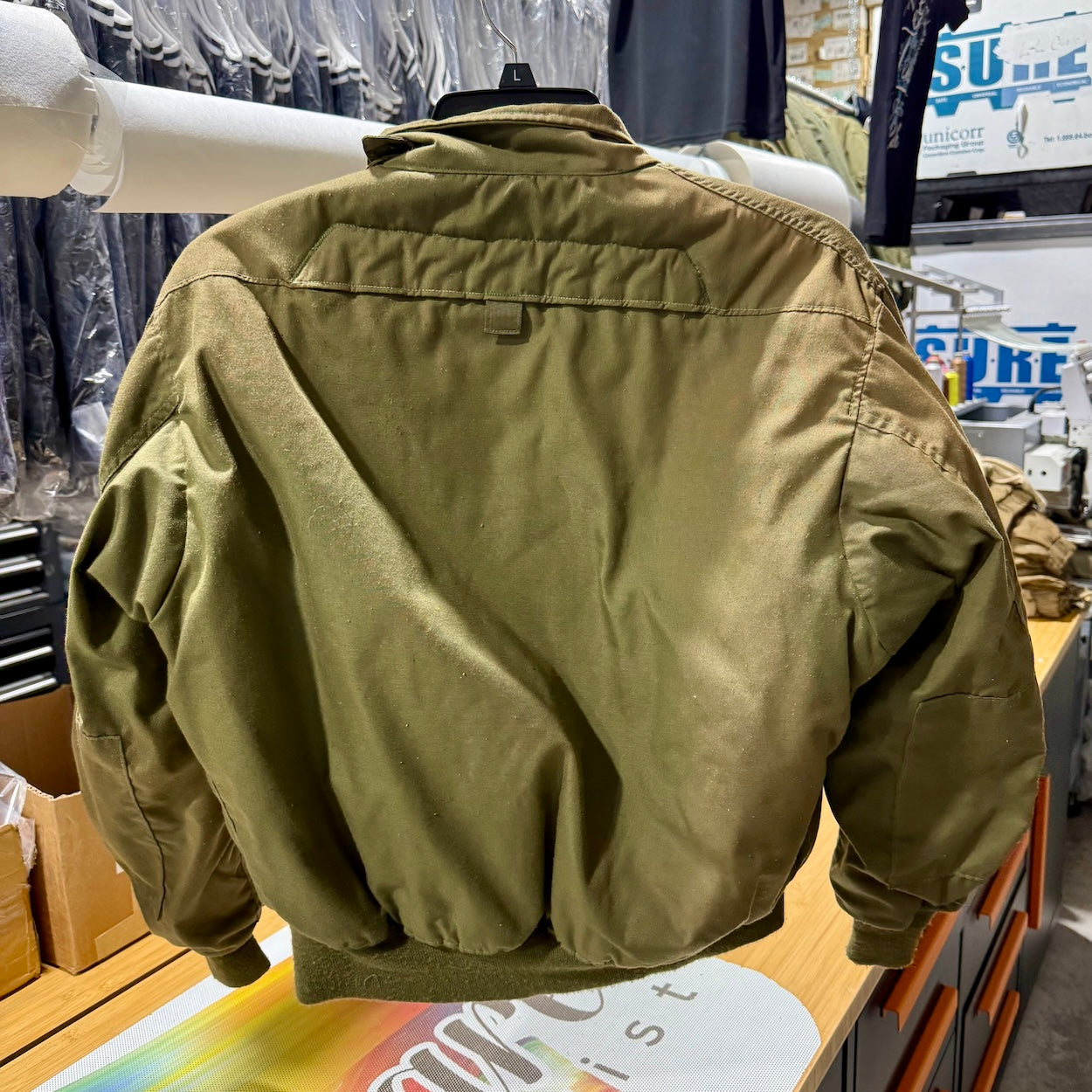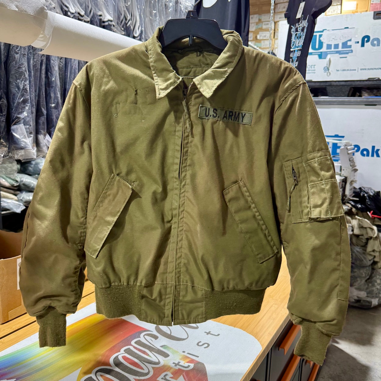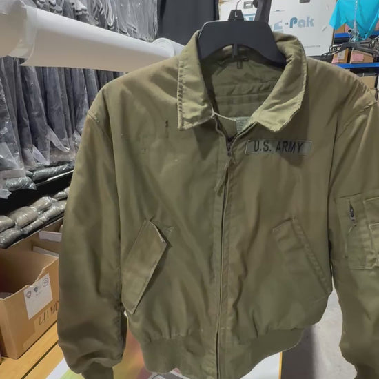 Condition: very good shows minor light piling inside, patch removed small snag top right front the coat has a vintage look some green and brown outside color very unique few small stains front( see photo & Video) - sewn patch show proof of its authentic heritage. All protective qualities remain at full strength.